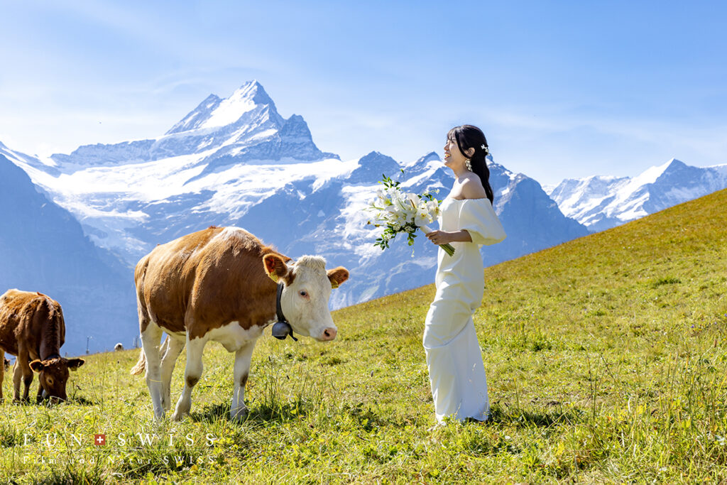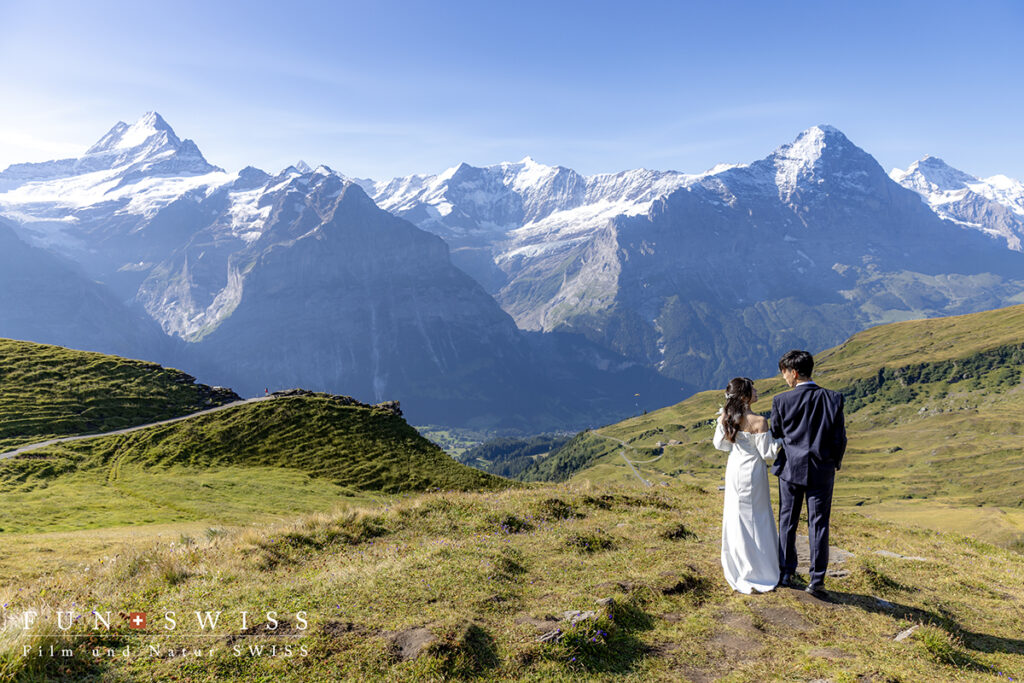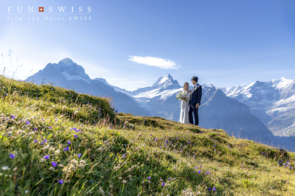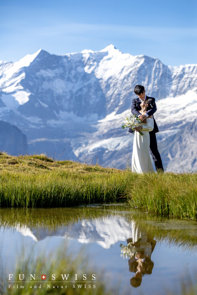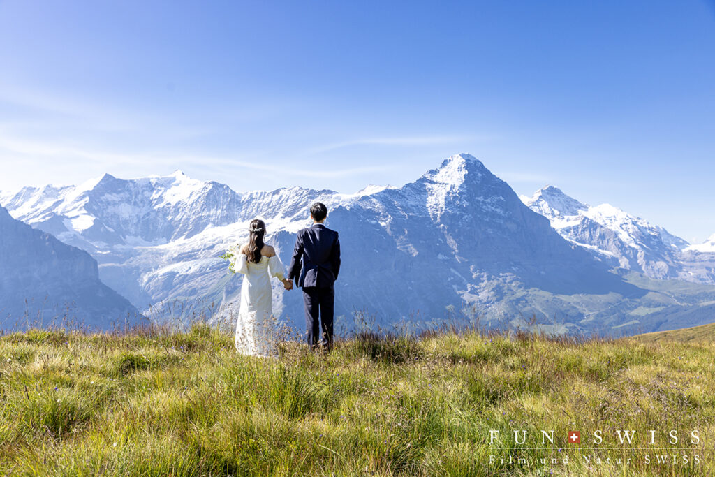 8月頭、自然に惹かれてスイスアルプスでのウェディングフォトを選ばれたお二人。