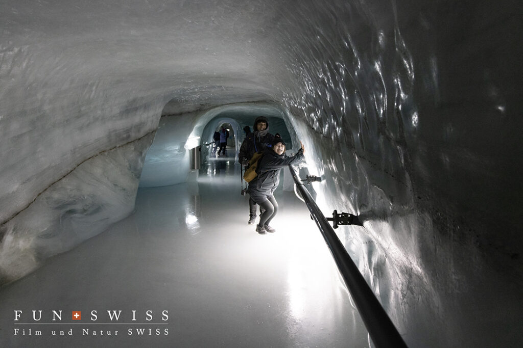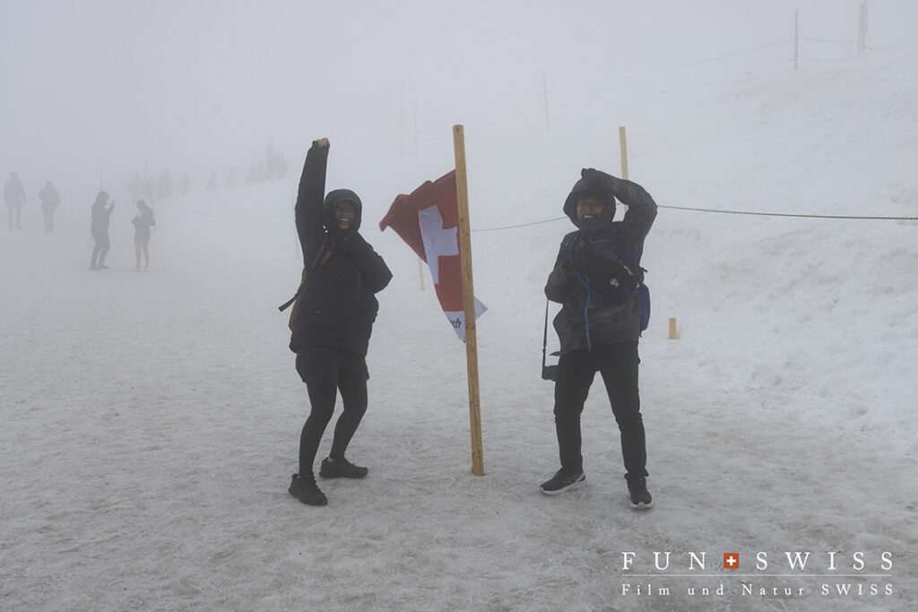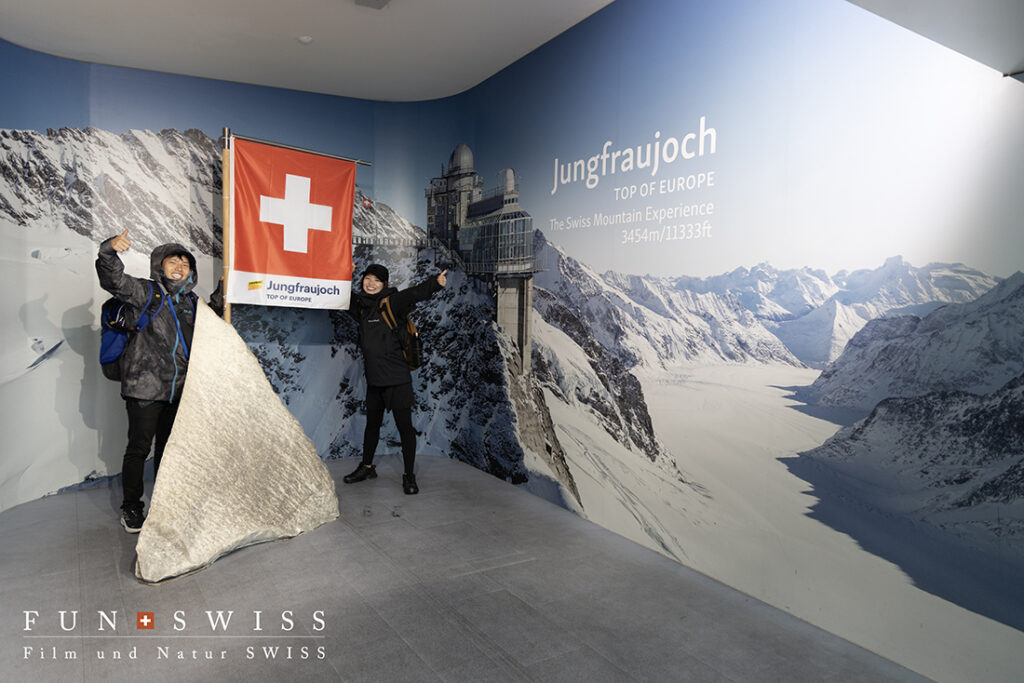 この辺りまでは外の景色も見えていましたが、、、標高3,454mのユングフラウヨッホに到着したら、すっかり雲の中でした~。。。