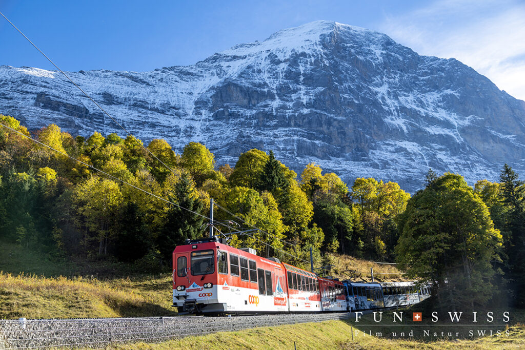 クライネシャイデックからグリンデルワルト・グルントまでは途中駅が二駅あり、好きなところで電車に乗り換えることもできます。