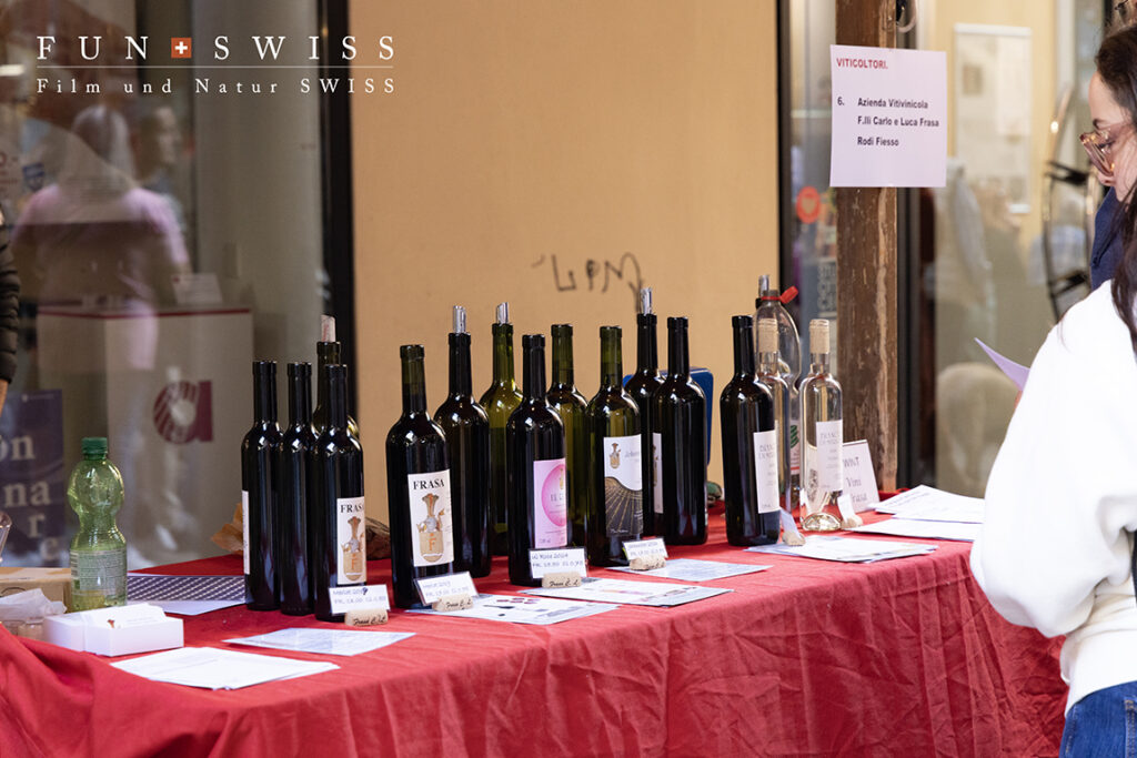 ティチーノ州旗色の出店が立ち並びます