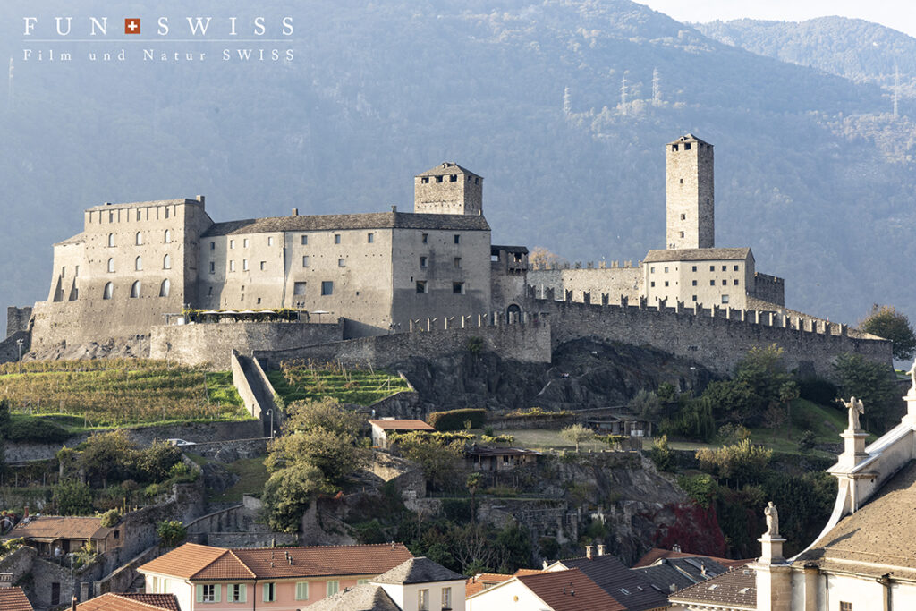 まさにベリンツォーナの街の中心の岩の上に建てられています。