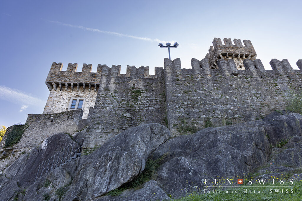 街の南東約600メートル、ベリンツォーナの要塞群が位置する岩盤の最高点に、聳え立つのがサッソ・コルバロ城です。