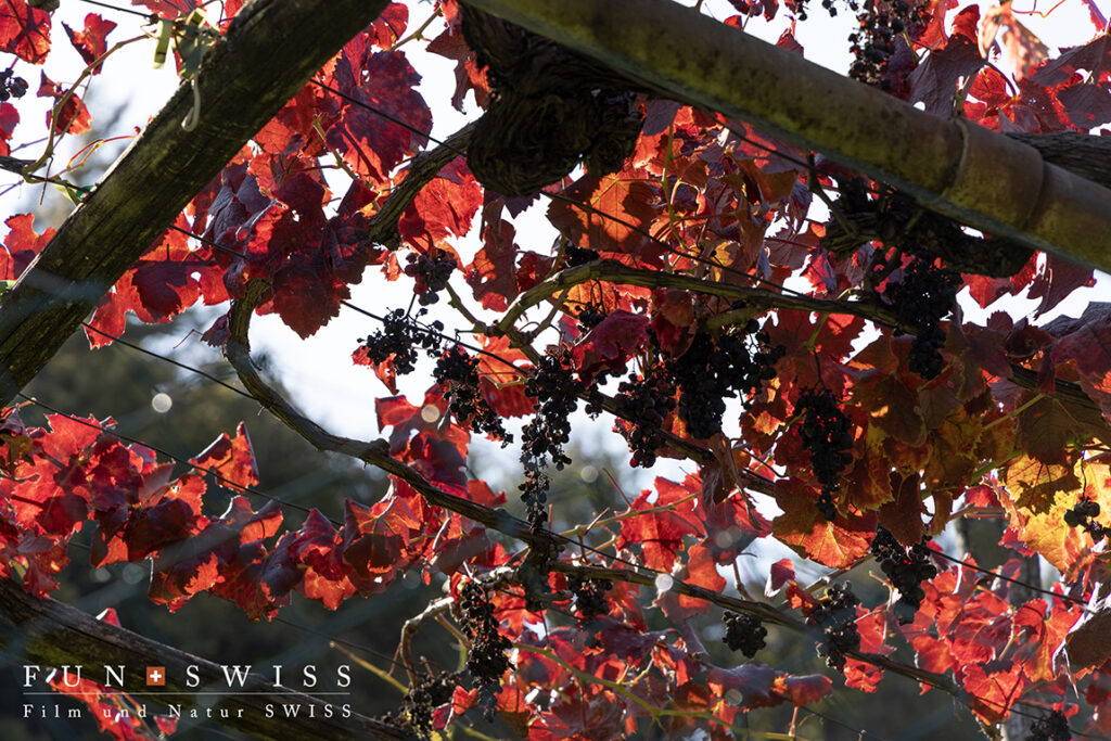 ブドウの葉は真っ赤に紅葉します
