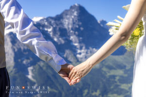 登山やハイキングが大好きなカップルが、スイスアルプスでのウェディングフォトに出会うのも自然な流れ、、、 山の天気は読めな…